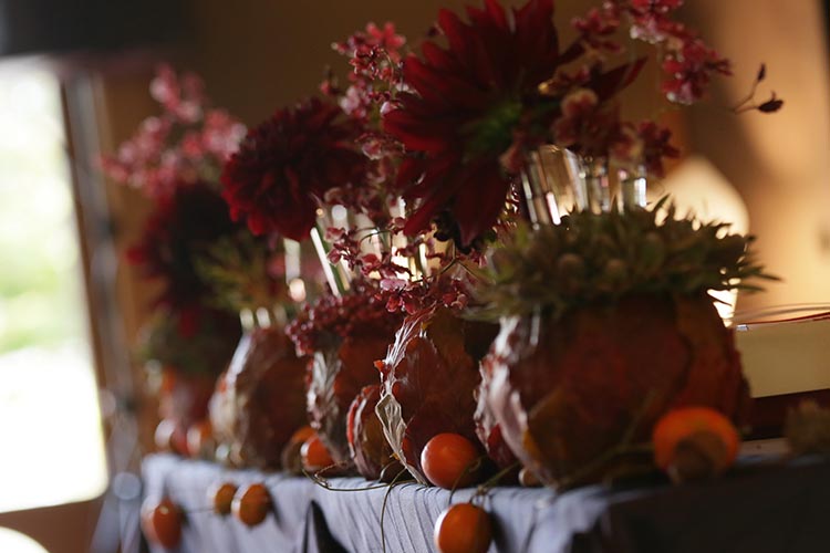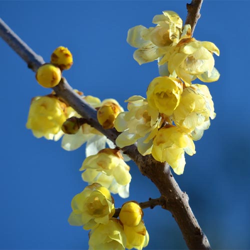 寒菖蒲、山茶花、日本水仙、蝋梅に万作。