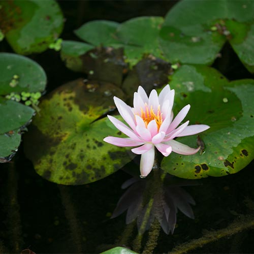 “花嫁の花”と呼ばれる睡蓮が、池の上に咲き誇る。