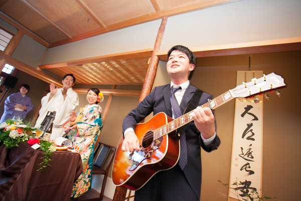 ご友人の皆様からも温かいスピーチを頂いたり新郎のお母様にご披露頂いた三味線は、プロ並みのうまさ!!