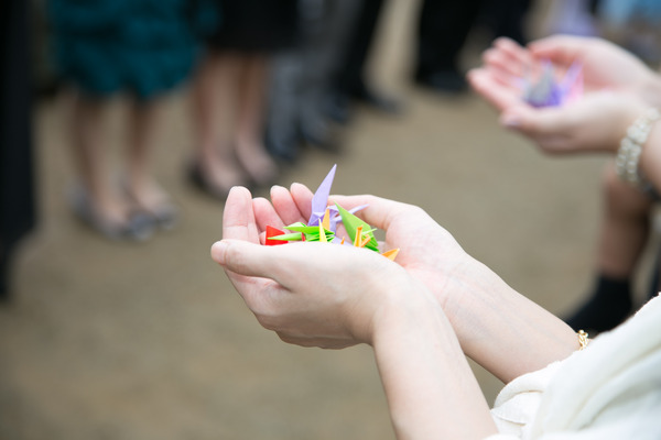 お子様には、手のサイズに合うよう少し小さめの折鶴をご用意されたお二人